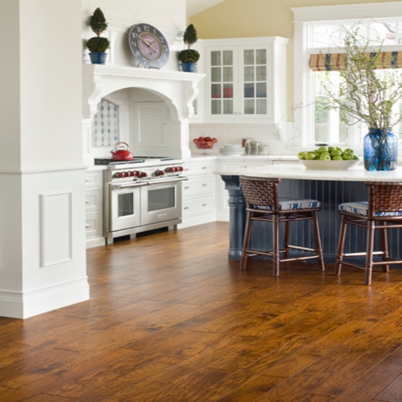 The Tuscan Plank series is random-width hardwood flooring that is hand-carved from fine, durable Hickory, and is available in several rich color selections. This ultra-affordable flooring alternative is competitively priced for a product that offers all the artisan hand scraping and hand chiseling of the higher-end Bella Cera lines. The Tuscan Plank series comes in a prepackaged 4"/5"/6" variable-width configuration and comes with an impressive 50-year warranty on residential installations.
