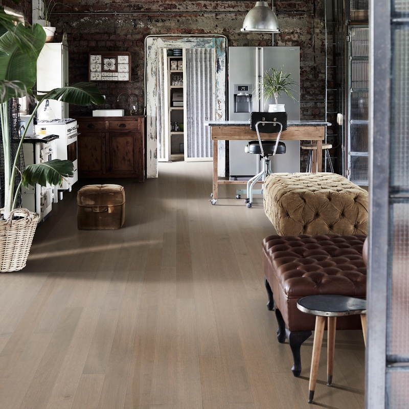 Light grey hard maple planks inspired by the Italian Renaissance bring refined warmth and serenity to any space. The subtle tones enhance the wood’s natural elegance for a timeless, inviting look.