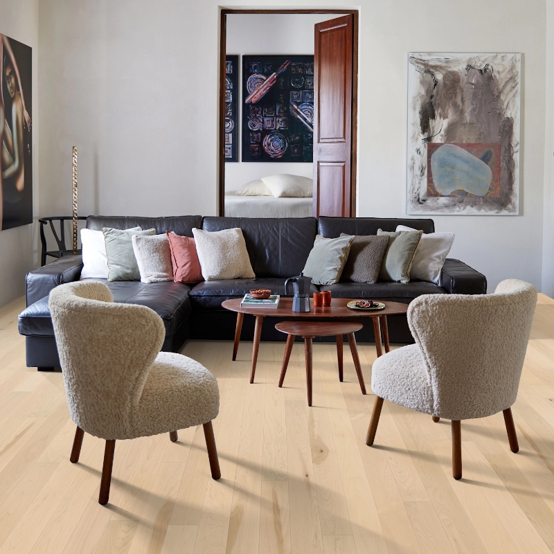 Light-toned hard maple with soft white undertones and delicate flaxen hues enhances the natural grain for a serene, airy feel. A sophisticated choice that brings subtle elegance to any space.