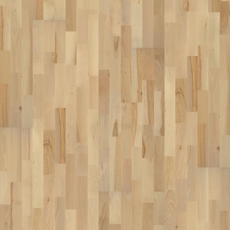 Scandinavian Beech, three strip design, silk matte finish, some knots.