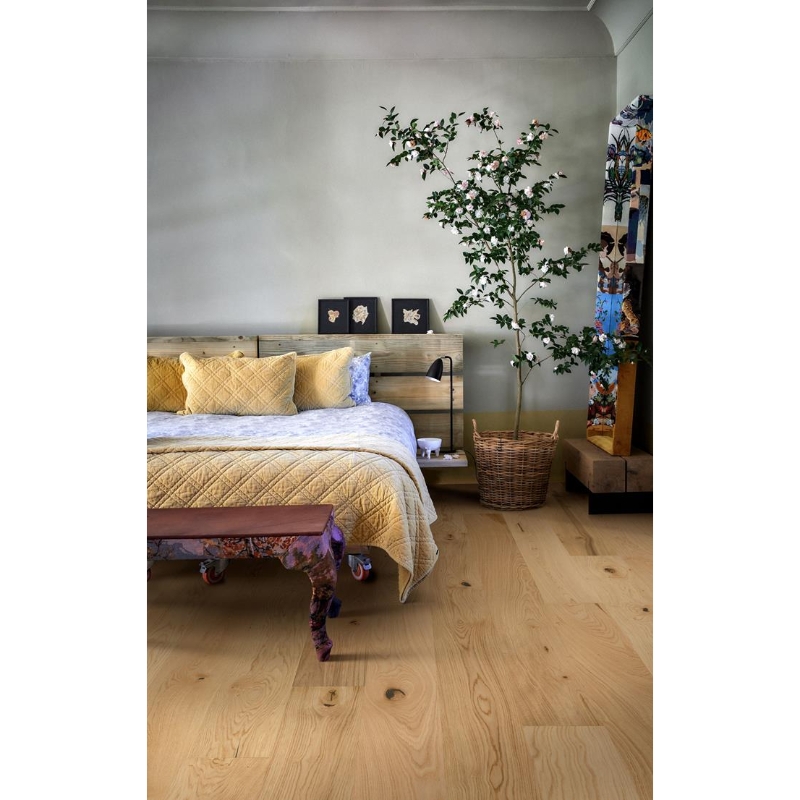 In Oak Aster the natural oak is left to shine in all its own glory with no staining, allowing the warm colour of the oak to penetrate the lacquered surface uninhibited. Each board is carefully brushed, accentuating the natural wood grain while softening the texture, knots and cracks. Any contrast in colour are purely natural, letting the raw material speak for itself. Oak Aster is also available in an oiled version.