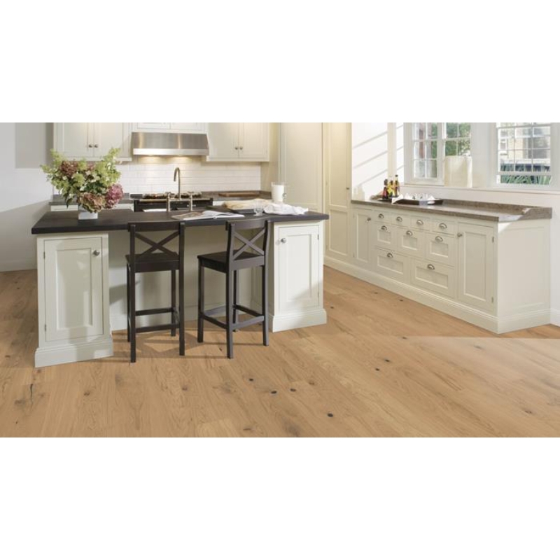 A light stain is used to give Oak Lupine its modern, slightly muted look, reminiscent of freshly cut oak timber. The oiled surface, brushed to soften the cracks and knots allows each board to demonstrate the natural wood grain of the material while still retaining the subtilty of this floor – in both its visual and tactile impression.