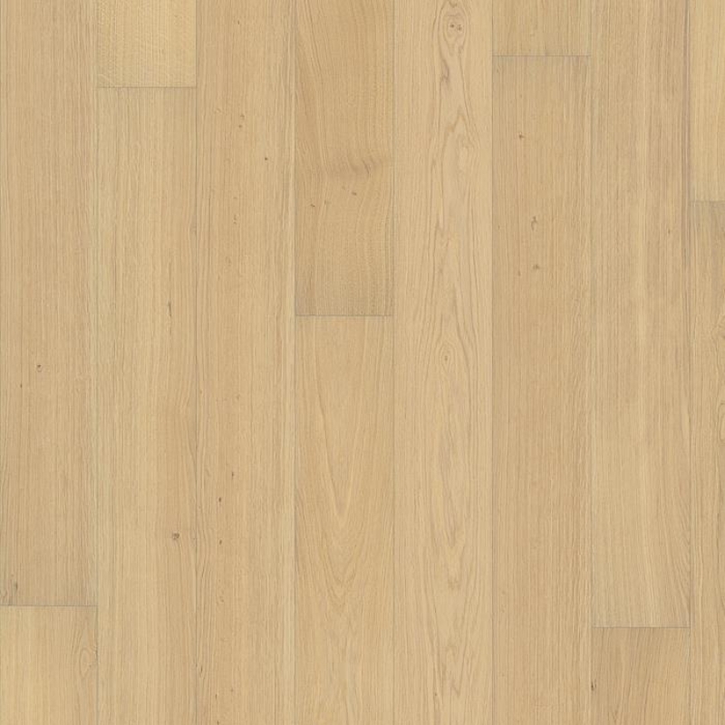 Oak Piazza AB Dim White is a premium 2-layer parquet flooring crafted from carefully selected oak, featuring moderate colour variations and few knots. The plank format is highlighted by four-sided micro-bevelling, while the brushed and misty white oiled finish enhances the wood’s natural grain and texture. Kährs Piazza and Large Herringbone products can be installed together making it possible to use Piazza as frame board for herringbone pattern.