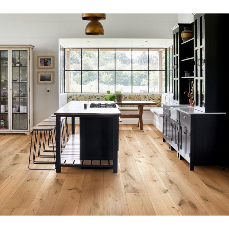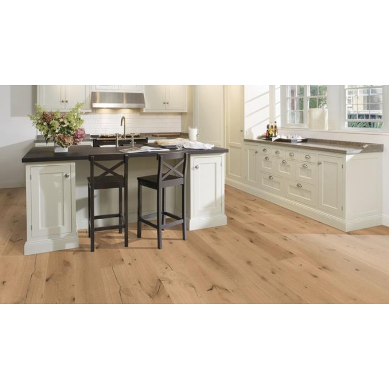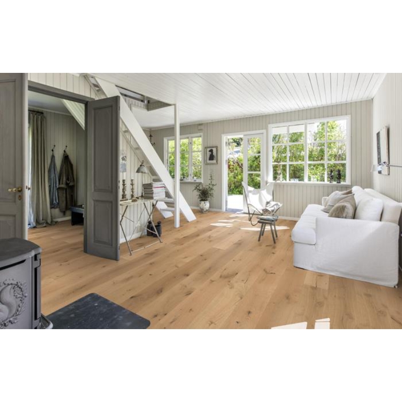 Oak Boreas intermingles colder, whiter tones with elements of slightly warmer, darker features such as knots and cracks creating a variety of shades for a natural, rustic look reminiscent of a freshly-cut oak. It is further enhanced by the careful brushing which accentuates the wood grain of each, unique wide plank.