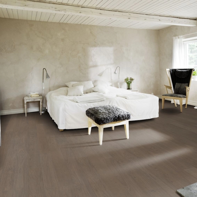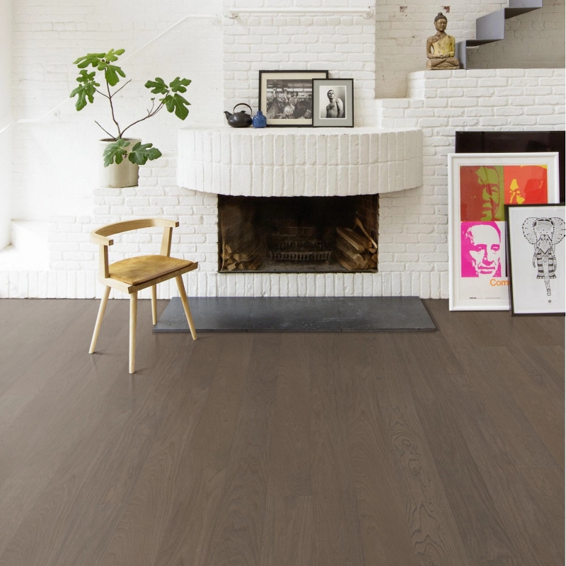 Deep, faded black oak with warm undertones. Subtle contrast and rich character in a calm matte look.