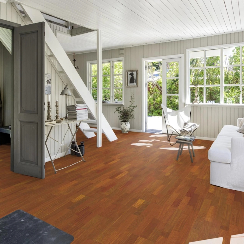 Jatoba plank floor with a dark, slightly reddish tone for a warm and distinctive look.