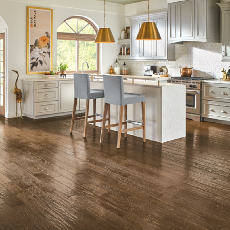 Oak flooring offers a classic appeal, making it one of the most popular hardwood flooring selections. Its grain boasts a personality that works in traditional and contemporary homes. Appalachian Ridge adds to that character by including a distressed wood texture. Distressed hardwood floors highlight the wood’s imperfections. In addition, the low gloss finish accentuates the wood’s surface while adding a rustic appeal to the floors.