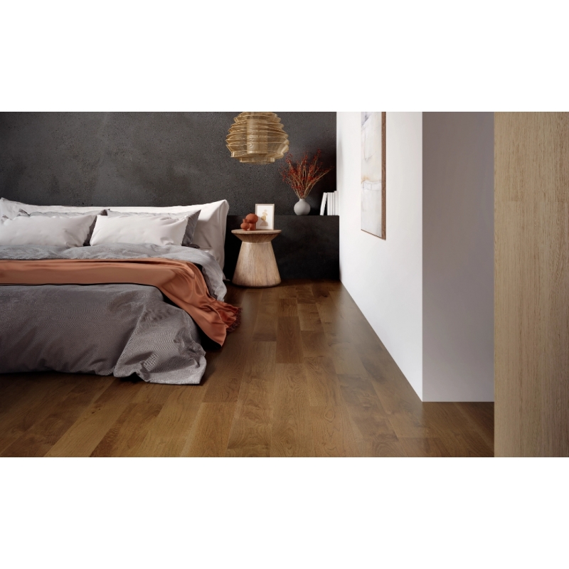 A stain application that softens the contrasts of the wood grain for a cozy, inviting look.
