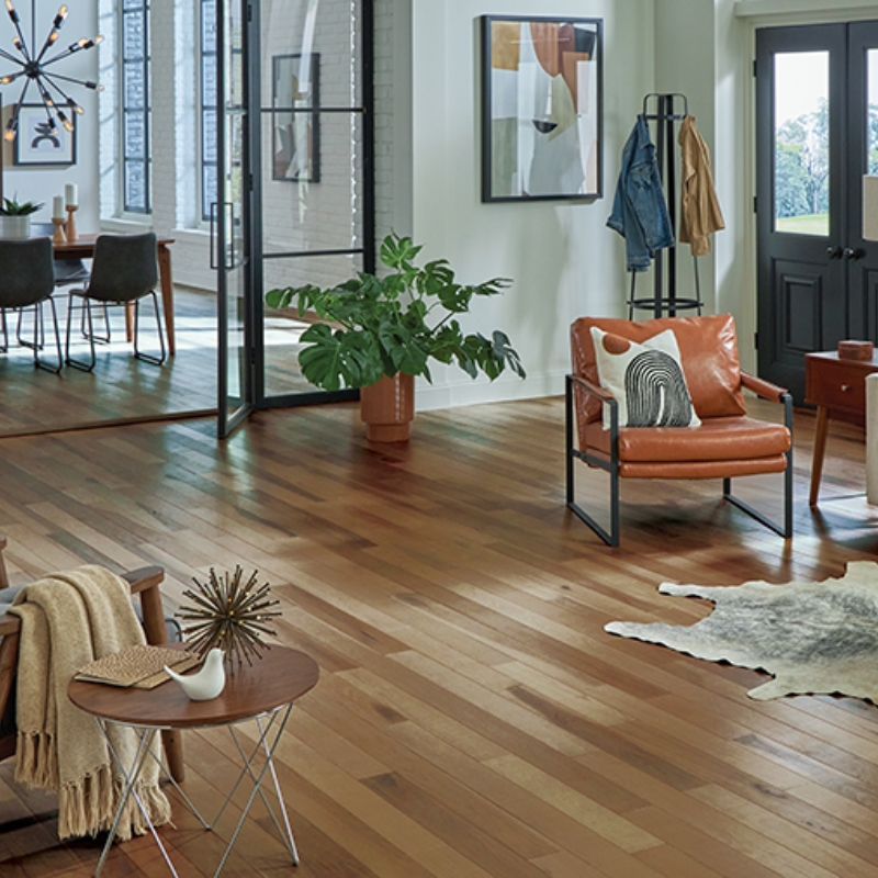 This Character series includes 3/4" thick solid construction of Appalachian oak, hickory, maple and walnut flooring with knots and natural character markings