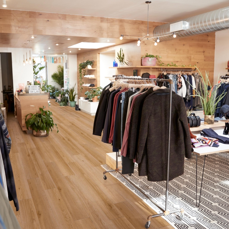 The "Nod to Nature Rewilding" collection features Dry Back LVT flooring, emphasizing durability and aesthetic appeal. Key features include embossed surface textures, low gloss urethane finishes, and micro-beveled edges for a refined look. The flooring is constructed with glue-down installation, suitable for any level of the home. Designed for experienced DIY enthusiasts, these floors come with a 15-year commercial warranty, ensuring long-lasting quality.