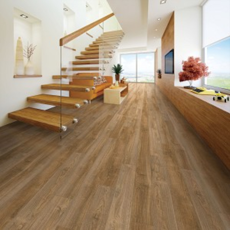 Hemisphere features a 100% waterproof construction with a pre-attached pad for comfort and sound absorption. The embossed surface texture and micro beveled edges create a realistic wood look and feel. Beautiful traditional wood looks in light to medium colors with board to board variations offer a clean modern look.
