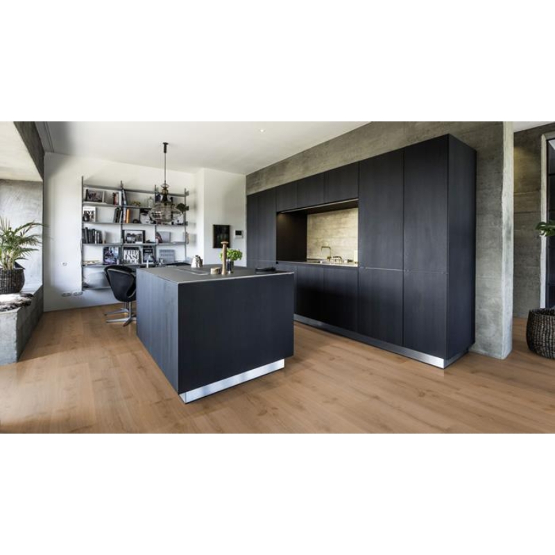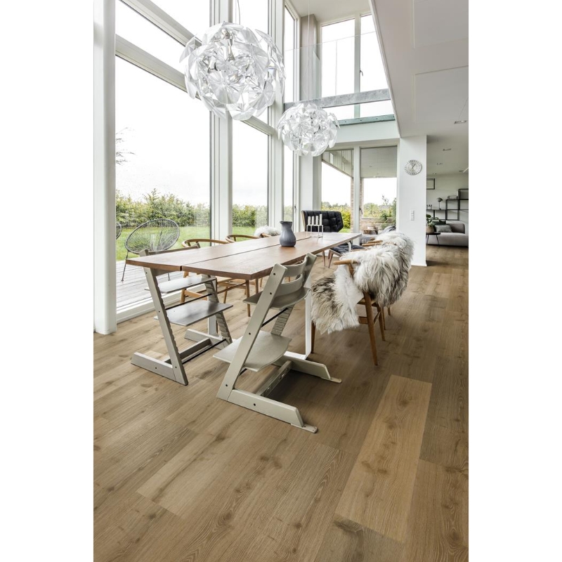 Kährs Luxury Tiles Click floor Akkelis has rich shades of brown and subtle tones of gold and amber, Akkelis is a characterful wood design floor with a warm impression. The rustical wood graining, knots and cracks are enhanced by synchrone embossing for a truly authentic wood look.