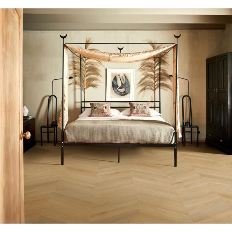 Get on a journey of discovery with Illusion Chevron, where the boundaries between reality and imagination blur, unveiling a floor that transcends expectations. Intention has a rich and deep natural oak golden-brown colour with a slight rustic wood look. This design effortlessly creates a comfy and cozy feel.