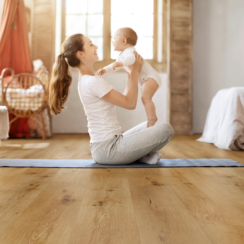 Design Features Microbeveled 4-sided, Wood design, Integrated sound reduction, Synchronized embossing