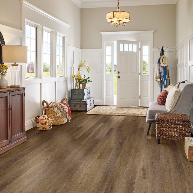 Everguard is the answer if you love solid hardwood flooring but don’t want to risk water damage. Its rigid core construction handles cold, dry, or humid conditions without losing integrity. And it’s 100% waterproof. So, you don’t have to drop what you’re doing to wipe up spills frantically. Your floors won’t suffer an ounce of damage. Plus, rigid core flooring delivers a natural wood look. You can choose from traditional or distressed wood finishes in oak, pine, or white oak with 20 color options.