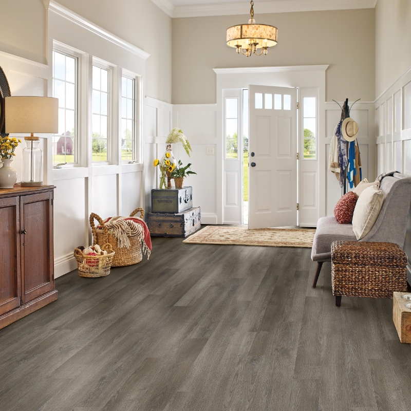 Everguard is the answer if you love solid hardwood flooring but don’t want to risk water damage. Its rigid core construction handles cold, dry, or humid conditions without losing integrity. And it’s 100% waterproof. So, you don’t have to drop what you’re doing to wipe up spills frantically. Your floors won’t suffer an ounce of damage. Plus, rigid core flooring delivers a natural wood look. You can choose from traditional or distressed wood finishes in oak, pine, or white oak with 20 color options.